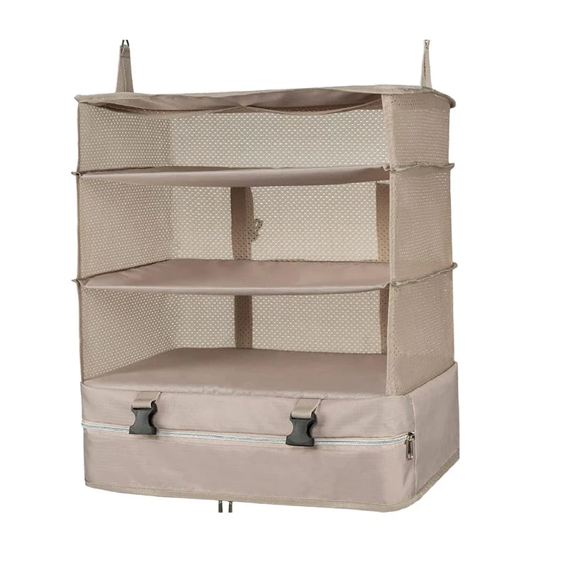 • HANG ANYWHERE- Just pull and hang from your luggage and you’re all set! You can now have your own shelf anywhere.